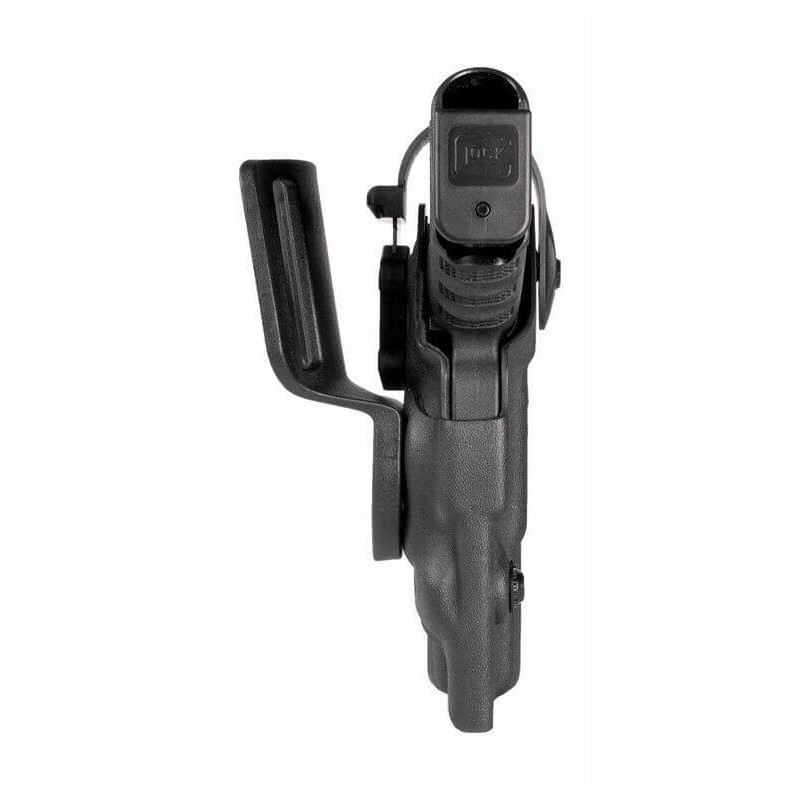 Fondina realizzata in Kydex con sistema di sicurezza di secondo grado. Foderata all'interno con vite di ritenzione sul fusto dell'arma. Passante fisso per asole cinturone alte fino a 5,5 cm. Fondina per Beretta 92/98 A1/ Brigadier.