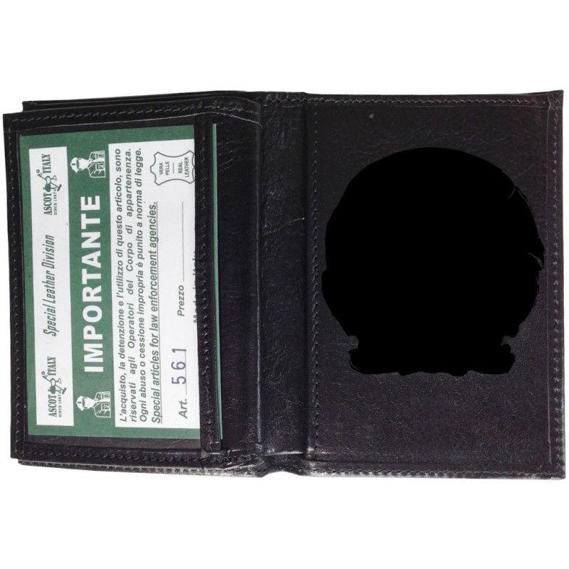 Portafoglio Ascot verticale in vera pelle pieno fiore con porta tesserino e porta placca occultabile dietro uno scomparto porta carte di credito.