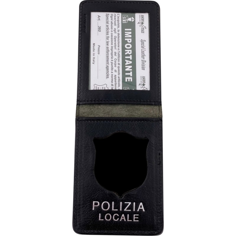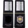Porta placca + tesserino in vera pelle di vitello pieno fiore per Polizia Locale.