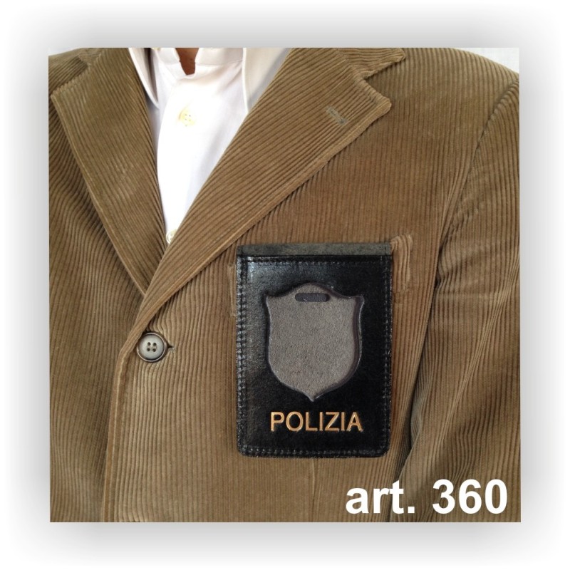 Porta placca + tesserino in vera pelle di vitello pieno fiore per Polizia di Stato.